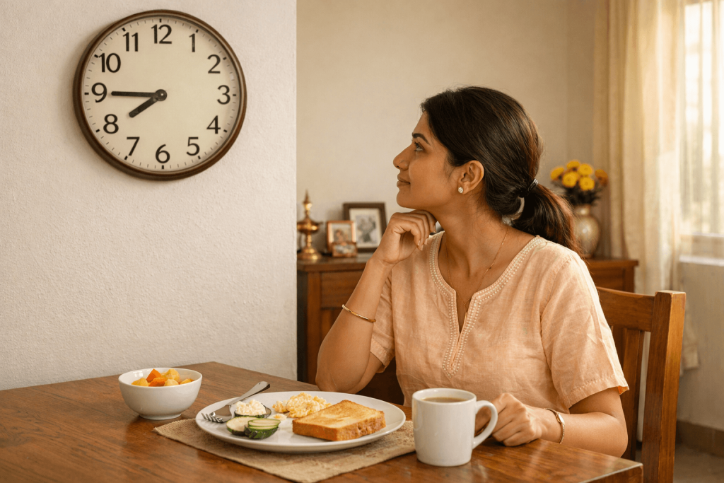 Before changing what you eat, fix when you eat. Irregular meals, long gaps, and skipping meals put the body under stress. This directly affects digestion, hormones, cravings, and mood.