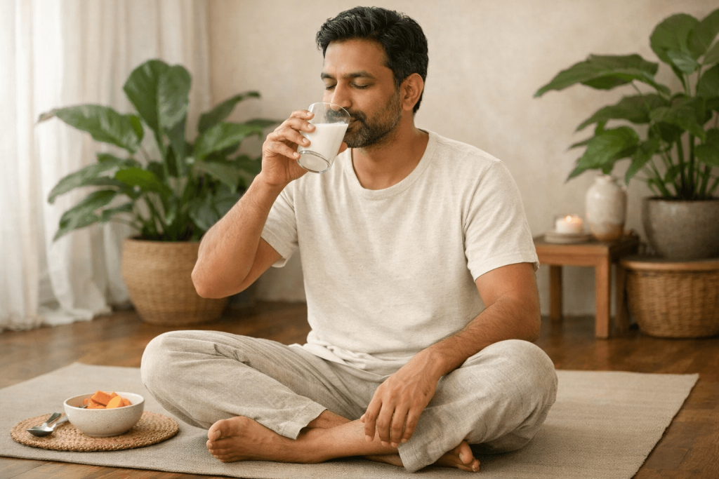 - Before bed:Optional turmeric milk if digestion permits